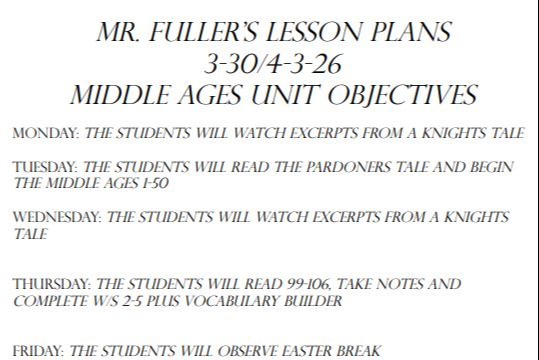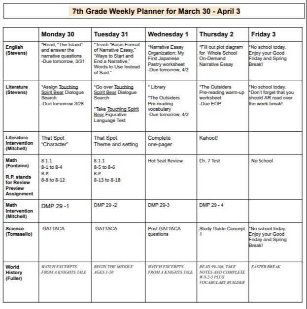 Please Note: Literature and English work will be posted in your students' Google Classrooms