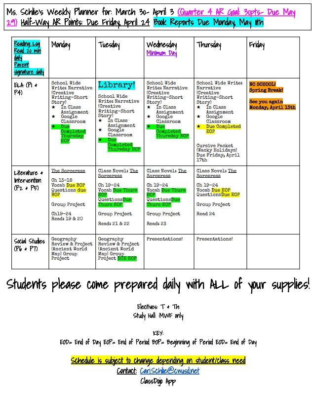 Welcome to Ms. Schlie's 6th Grade Class