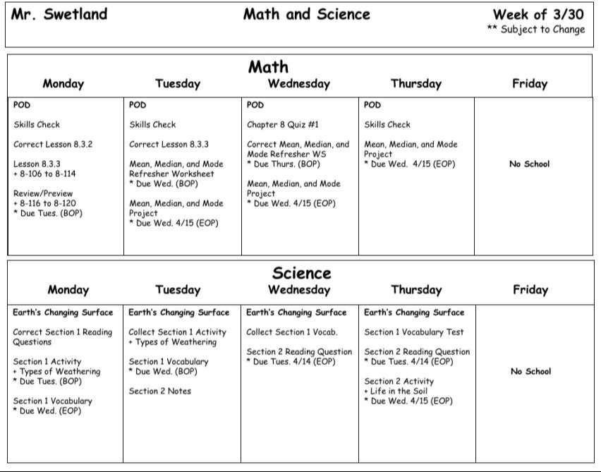Welcome to Mr.Swetland's 6th Grade Class